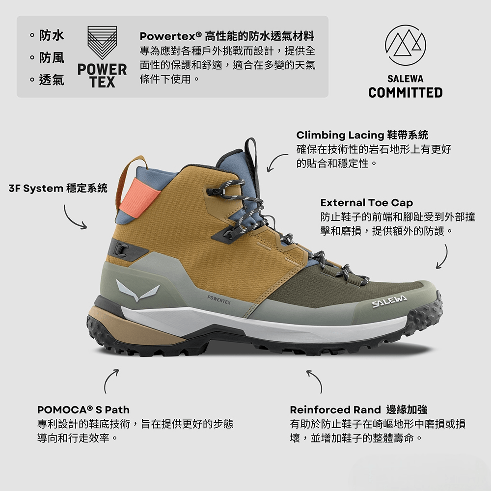PUEZ MID POWERTEX 是一雙兼顧舒適、設計與功能的輕量型戶外鞋,非常適合初階登山健行者或城市週末戶外玩家。不過如您計畫挑戰多天行程或困難地形,建議選擇支撐性更高的 Salewa 高階鞋款。
